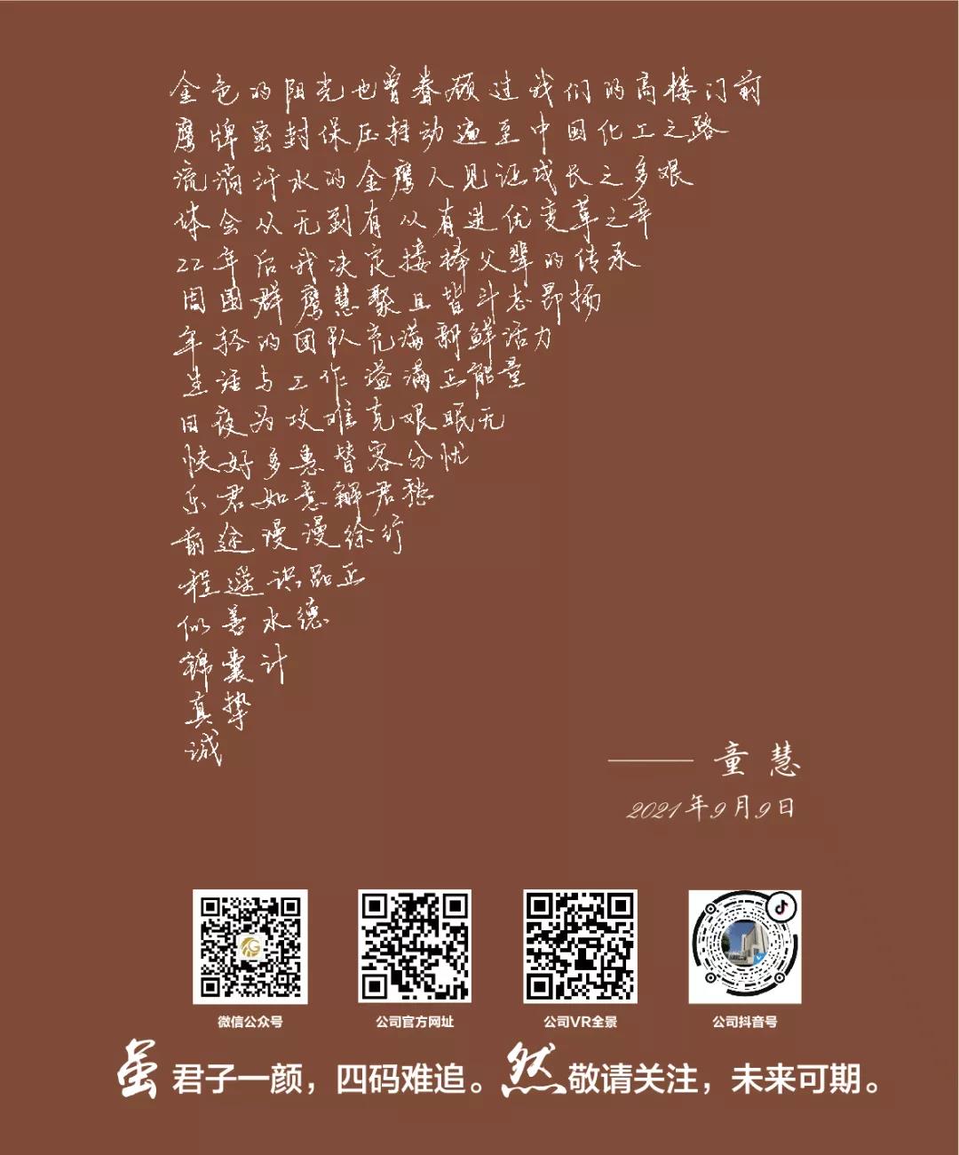 沖鋒的號角再次吹響,我們又一次出發(fā)向前。未來(lái),我們要立足長(cháng)遠,把握當前,堅定信心,我們將以“有幸金鷹、無(wú)悔金鷹”的情懷,以“功成必定有我”的使命擔當,只爭朝夕,不負韶華,共同續寫(xiě)金鷹下一個(gè)二十年的理想與榮光!