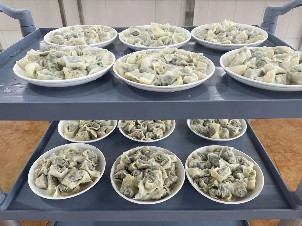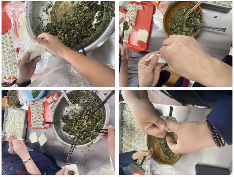 大家洗干凈手圍站在廚房,擼起袖子大展身手。攤皮、放餡、捏形狀、成形,動(dòng)作嫻熟的小伙伴一氣呵成。